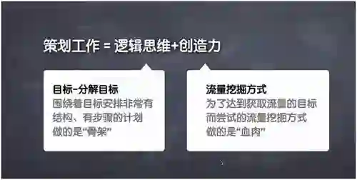 而现在我们很多人在做营销策划方案的时候,都是把方案的全部想像成是流量挖掘方式,仅此而已,却没有关注目标与分解目标这些结构,纯粹是盯在这个方案的曝光度,而不是去围绕整个方案的一个有效流量的目标去做事情。这是一个误区。