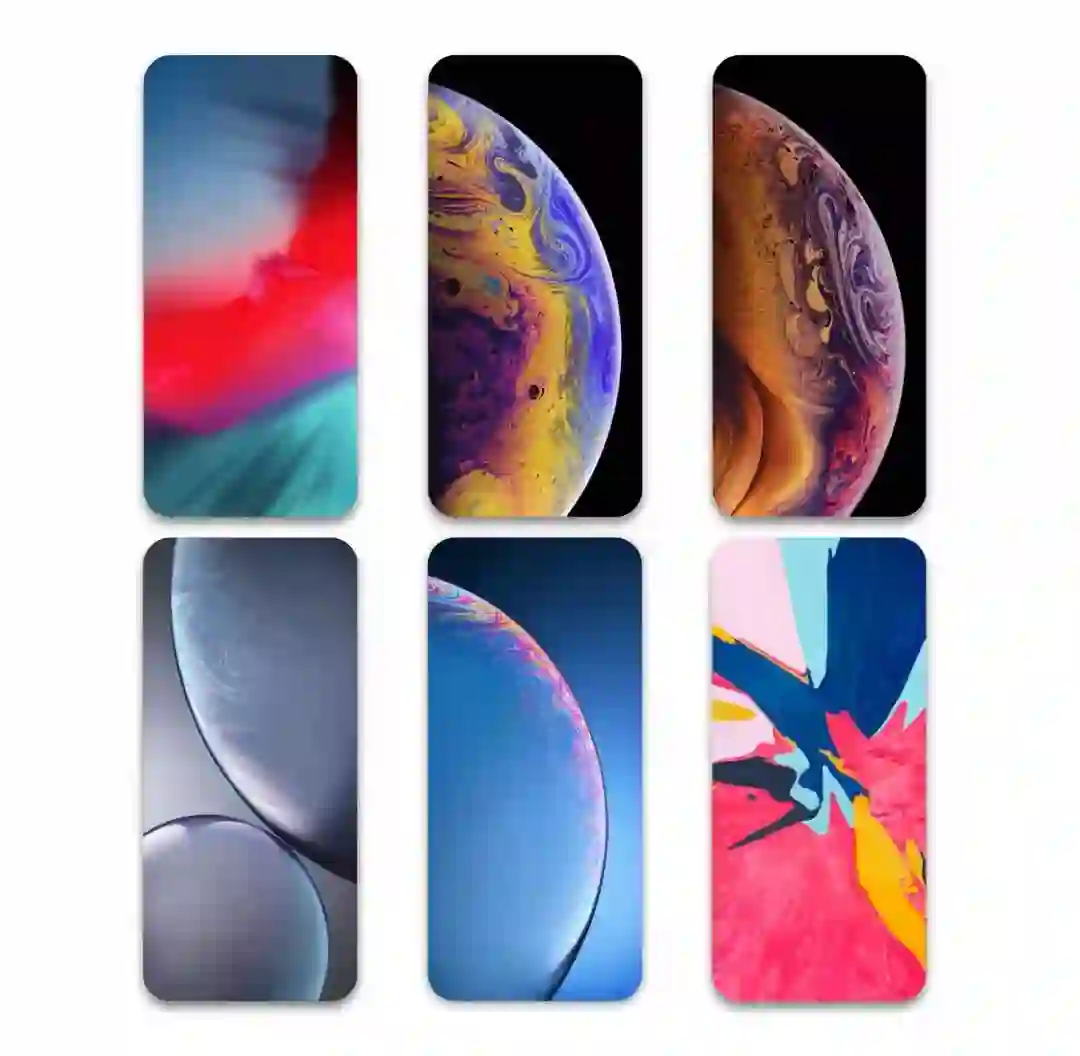 比如 iPhone XS 系列类似星球(实际是颜料)的「隐藏刘海式」壁纸、iPhone XR 的圆弧壁纸及新 iPad 的「挥洒创意」系列壁纸。