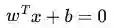 如果用x表示数据点,用y表示类别(y可以取1或者-1,分别代表两个不同的类),一个线性分类器的学习目标便是要在n维的数据空间中找到一个超平面(hyper plane),这个超平面的方程可以表示为( wT中的T代表转置):![]()