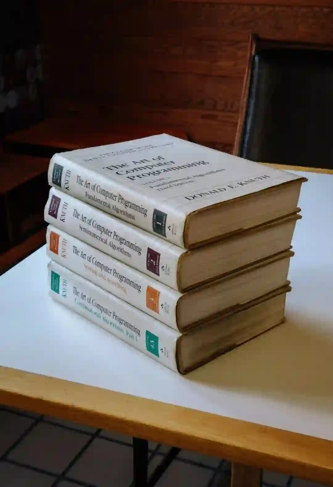 这本书主要讲算法,尽管 Knuth 博士指出,在 3800 年前的巴比伦刻写板上也能找到算法,但这本书能满足数字时代的需求。Knuth 是一位受人尊敬的算法专家;他的名字与该领域一些最重要的方法关联在一起,例如 Knuth-Morris-Pratt 字符串搜索算法。这个算法是在 1970 年设计的,它可以在文本中查找给定单词或字母的所有匹配内容——例如,当你点击 Command + F 在文档中搜索关键字时采用的就是这种算法。