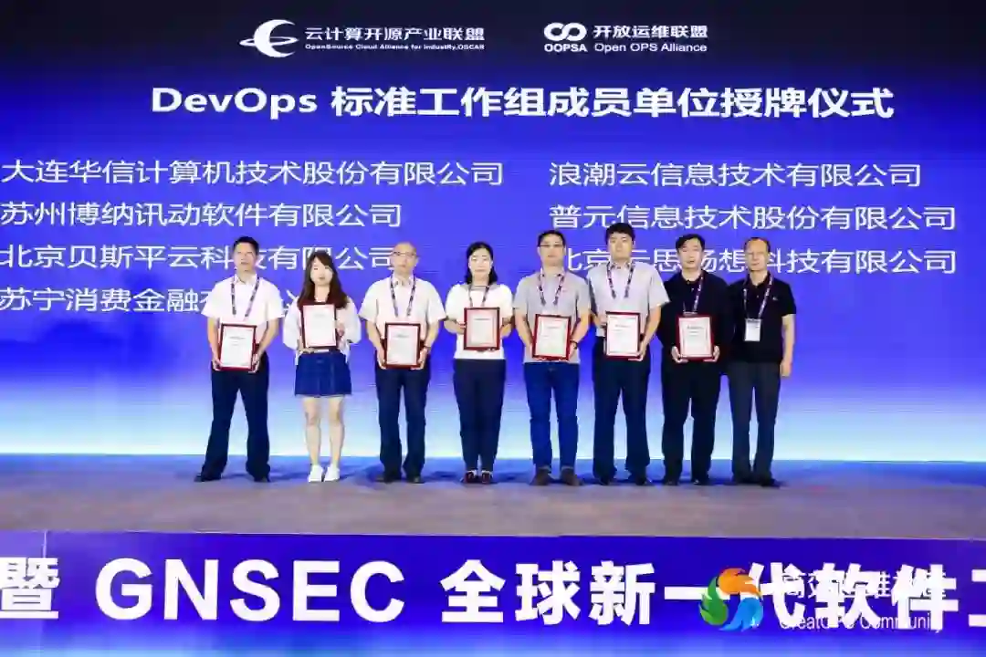 同时,DevOps 标准工作组也有新的进展,新诞生一批成员单位,新加入的成员单位有:大连华信计算机技术股份有限公司、浪潮云信息技术有限公司、苏州博纳讯动软件有限公司、普元信息技术股份有限公司、北京贝斯平云科技有限公司、北京云思畅想科技有限公司、苏宁消费金融有限公司。
