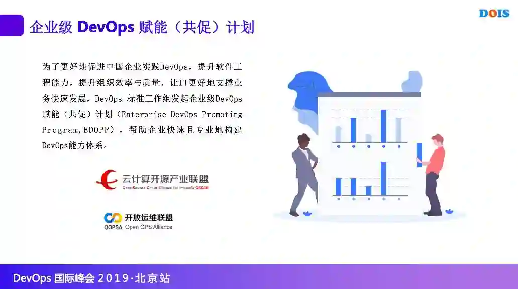 为更好地促进中国企业实现组织级 DevOps 能力,打造一流的、端到端的 DevOps 持续交付流水线平台、提升组织效率与质量,让 IT 更好地支撑业务快速发展,由中国国信通院旗下云计算开源产业联盟联合开放运维联盟、国内外多家企业及专家力量共同发起的一项企业级 DevOps 赋能(共促)计划。