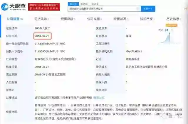点开法人资料一看,TA还注册了另一家“湖南辰子全脑教育科技有限公司”,去年8月刚刚注册,看来是用了自己旗下一家公司的微博给另一家公司做推广。