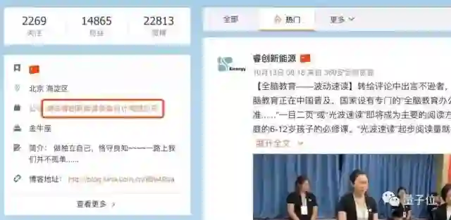 再看看那位在微博大肆安利“量子波动速读”的博主是什么背景。