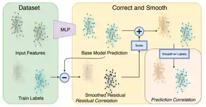 后处理步骤是通过从早期基于图的半监督学习方法对标准标签传播技术进行简单修改而实现的。我们的方法在各种各样的网络上都超过或接近了最新的GNN的性能基准,并且参数和运行时间大大减小。我们将标签信息直接整合到学习算法中,从而获得简单而可观的性能提升。我们还将该技术融合到大型GNN模型中,从而获得性能的提升。
