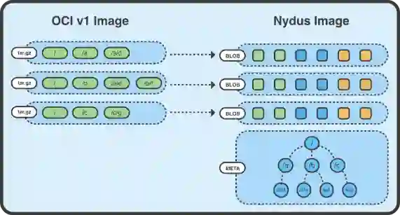 而我们实现的 Nydus 则是一种基于文件系统的容器镜像存储方案。