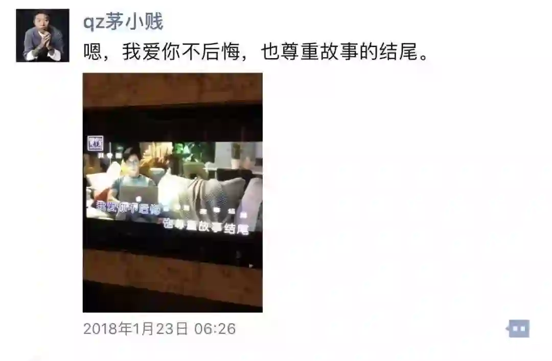 「嗯,我爱你不后悔,也尊重故事的结尾。」