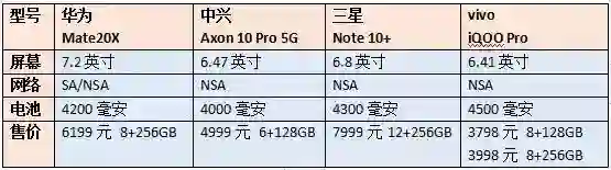 先来通过下面的表格,看看目前已经发布或者已上市的四款5G手机的大致情况: