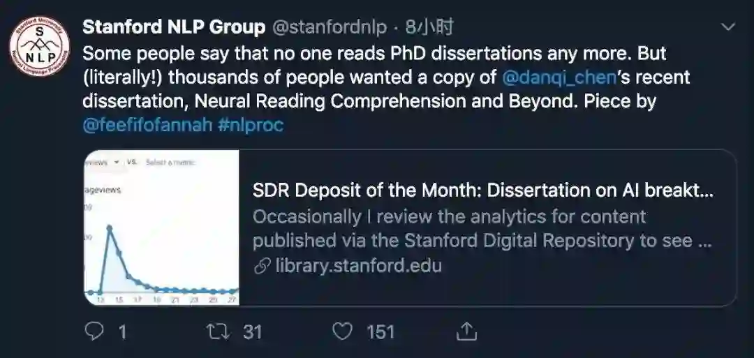 “很少有人的博士论文能够成为「爆款文章」,但陈丹琦做到了。这位近日从斯坦福毕业的计算机科学博士引发了人们的广泛关注。据斯坦福大学图书馆介绍,她长达 156 页的毕业论文《Neural Reading Comprehension and Beyond》上传仅四天就获得了上千次的阅读量,成为了斯坦福大学近十年来最热门的毕业论文之一。”