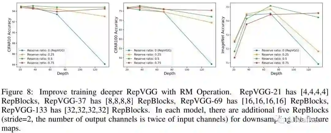 作为一种“plug-in”操作,当网络比较深时,RM可以帮助RepVGG取得更好性能。额额额,看了半天没看懂,以后再补上吧....