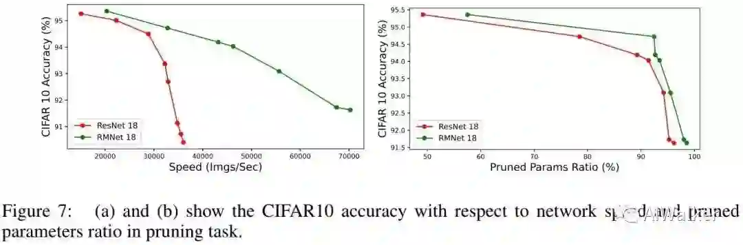 上图对比了ResNet-18与RMNet-18在L1Norm剪枝上的性能对比,可以看到: