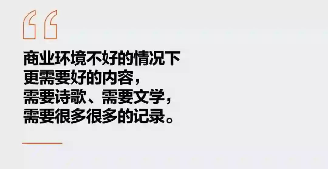 我们特别希望付费能够做起来,我觉得内容价值被低估了,尤其是这种商业环境不好的情况下更需要好的内容,需要诗歌、需要文学,需要很多很多的记录。