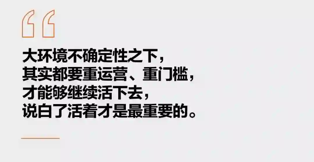 大环境不确定性之下,其实都要重运营、重门槛,才能够继续活下去,说白了活着才是最重要的。
