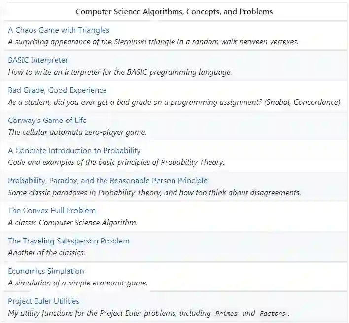 机器学习离不开Python。所以,全球第一的AI教科书作者、Google Research总监Peter Novig就专门为初学者做了一个关于Python编程示范操作的GitHub项目,具体的内容可见下文,希望该项目会有助于你的Python编程和机器学习技能。enjoy!