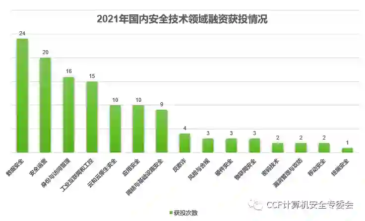 数据安全领域在2021年共获得24笔融资,在所有细分领域获投次数中最多,该领域目前融资规模近20亿元(仅统计已披露具体融资金额的数据,实际规模更高)。我国今年陆续颁布《数据安全法》、《个人信息保护法》以及《关键信息基础设施保护条例》等重磅法案,从政策层面对数据合规以及各行业的数据监管提出了更严格的要求。数据安全无疑成为本年度资本竞相追逐的热点技术领域,在众多安全投融资活动中拔得头筹。