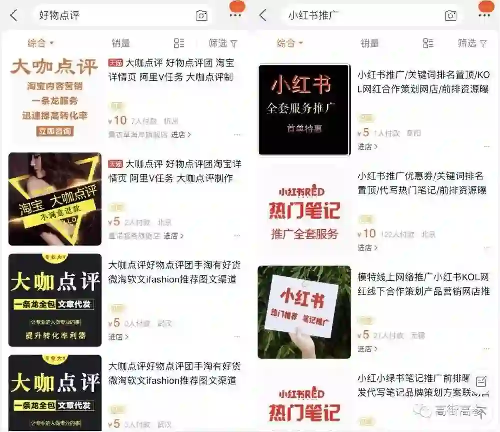 这非常有可能,在淘宝上搜索“大咖点评”“好物点评团”,已经可以看到相关的一条龙服务,搜索小红书推广,相关商品也是一大把,而且淘宝最基本的宝贝评价也早已失守,淘宝上可以搜出各式各样的好评和淘宝卖家秀拍摄商品。