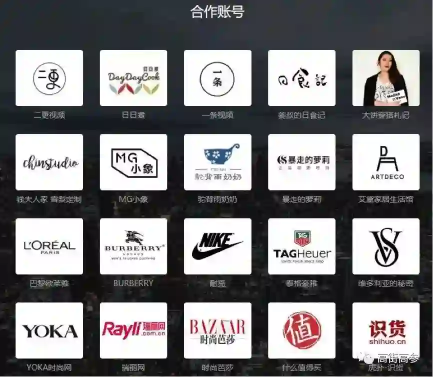 包括小红书笔记,上面这些合作账号大多是做时尚、美妆和食品方面的内容,这跟淘宝的在特色市场方面的侧重也相符。