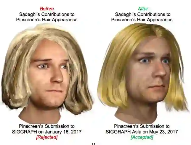 2017年5月23日,对于“SIGGRAPH亚洲技术论文”提交的成果,Sadeghi实施了他发布的头发外观框架的变体,显着提高了Pinscreen的头像的质量,因此这次提交被接受了。