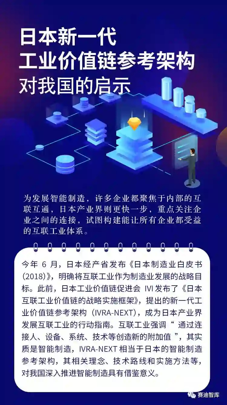 2018 年6 月,日本经产省发布《日本制造业白皮书(2018)》,明确将互联工业作为制造业的发展目标。此前,工业价值链促进会IVI 发布了《日本互联工业价值链的战略实施框架》,提出的新一代工业价值链参考架构(IVRA-Next),成为日本产业界发展互联工业的行动指南。