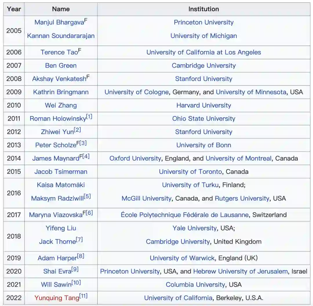 可以看到,北大数院00级校友张伟(2010年获奖)、恽神恽之玮(2012年获奖),03级校友刘一峰(2018年获奖)曾获此奖。