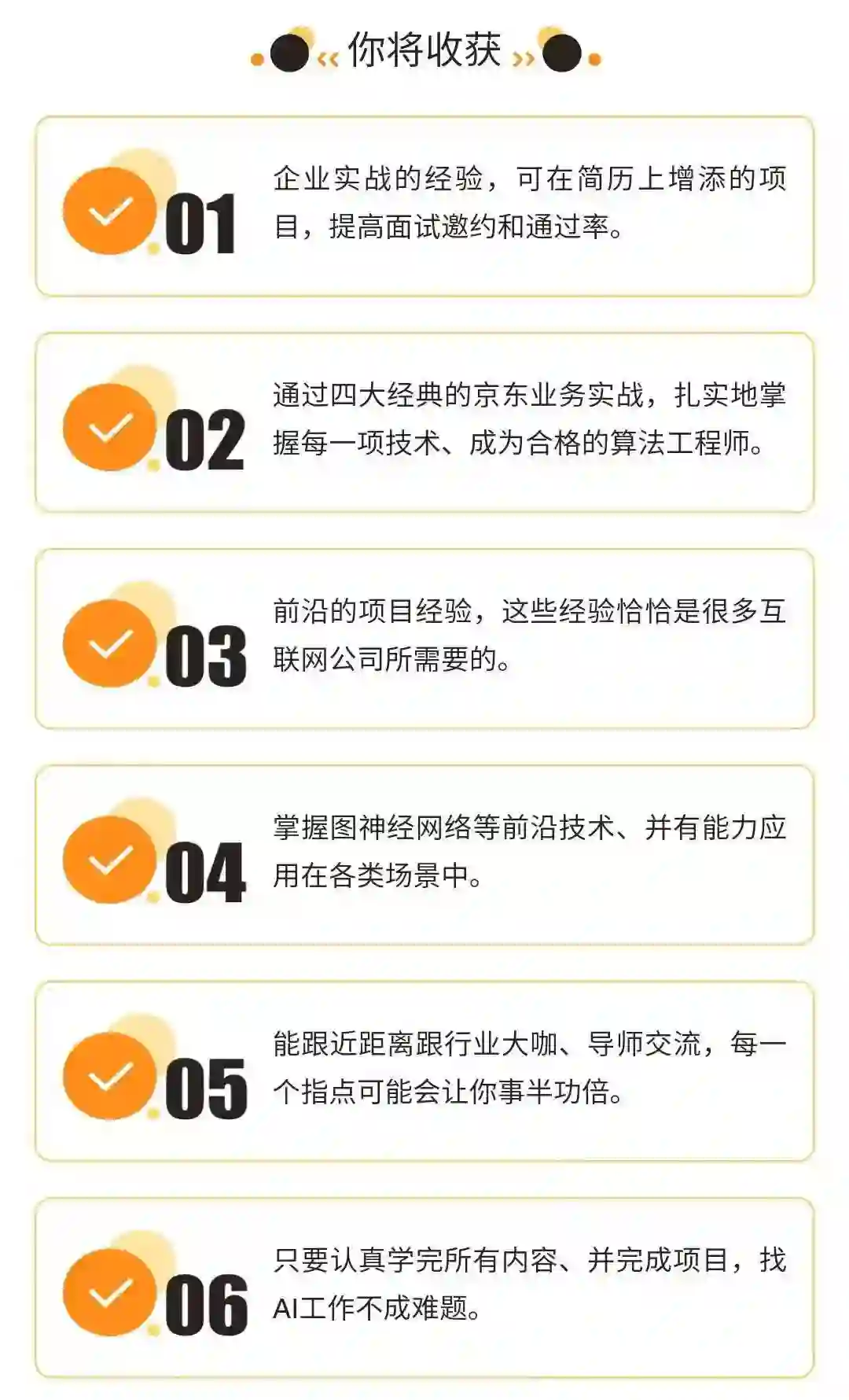 为了帮助解决学员遇到的问题,专业助教会提供全天社群答疑服务。我们的助教均来来自于一线AI公司和国内外名校,扎实的理论和工业界应用也是我们选拔助教老师的重要标准,拒绝空谈理论。