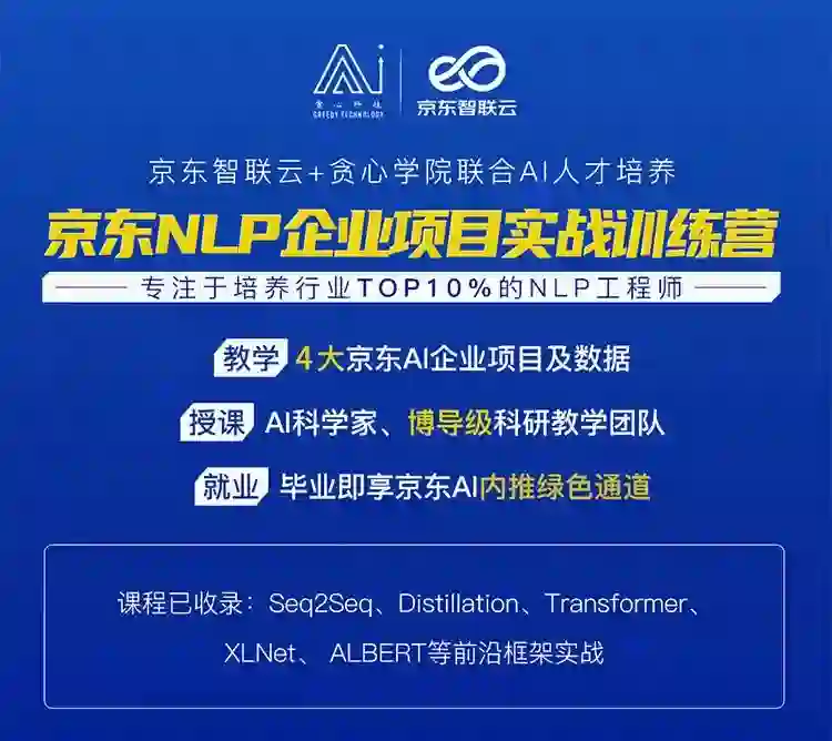 京东智联云联合贪心科技推出了《京东NLP项目实战训练营》,挑战京东落地应用项目,智能医疗分诊项目、智能营销文案生成项目、智能客服系统项目、同类商品搜索项目。 完成这些项目的同时,你也会学会使用BERT, GCN, GAT等前沿技术原理和应用。