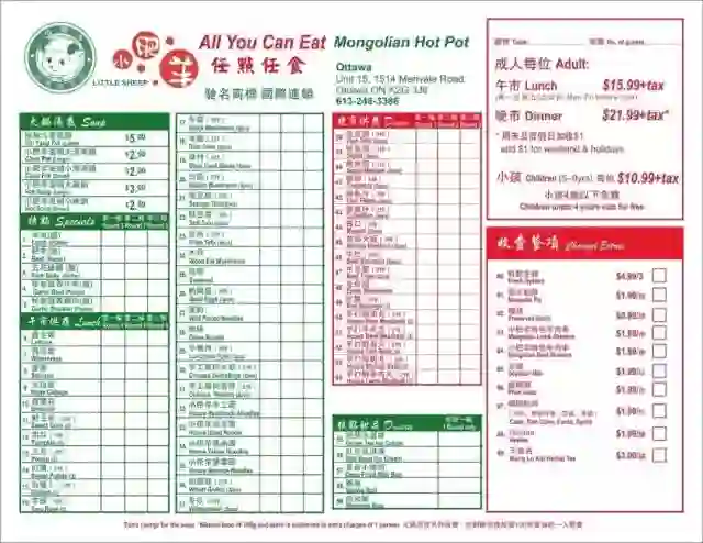 小肥羊在美国东西海岸开了三十几家门店,菜单从开业伊始就是中英合璧。简化菜单,没有那么多眼花缭乱的选择。