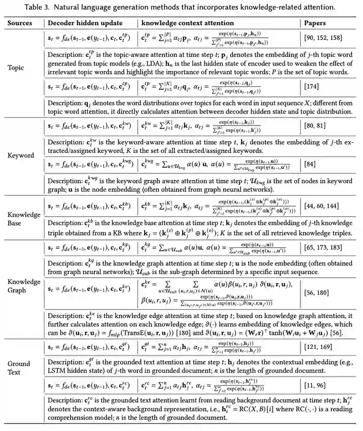 )加入到decoder中。下图3罗列了对于不同的知识类型,注意力机制的计算方式。