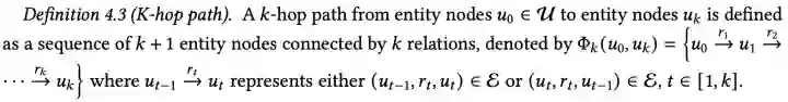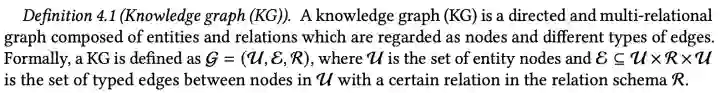 知识图谱是一个有向多关系图,由实体和关系组成。知识图谱通常定义为 ,其中 是实体节点集合, 是类型边集合。在这个章节,我们只考虑本体论中的知识图谱,即每个边都是完全无歧义的。