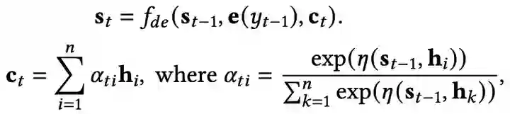 注意力机制 (Attention Mechanism) 在论文[1]中,注意力机制主要是在decoder中加入上下文向量 ,用于刻画输入文本对于生成过程的重要程度: