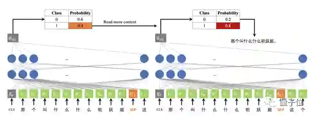 当锚点在“姬”这个字上的时候,如果当前边界决策的概率小于某个阈值,那么就必须考虑更多的上下文(添加额外的上下文“这个”),得到更可靠的决策。这之后,“那个叫什么什么呃妖姬”这几个字就被标记为一个信息单元。