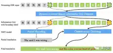 模型会不断从自动语音识别(ASR)模型中读取实时语音流,并确定其信息单元边界,将语音流切分成一个一个翻译单元。