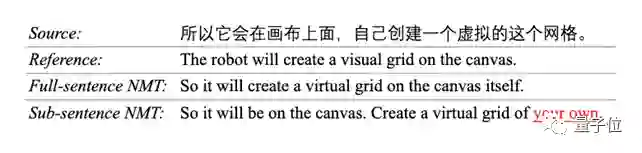 对于“所以它会在画布上面,自己创建一个虚拟的这个网格”这个句子,整句NMT(神经机器翻译)模型能够生成准确的翻译。问题是,这样的模型需要等到一个完整句子结束,才能开始翻译。