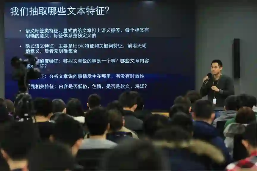 据介绍,阿里、腾讯、百度、美团、新浪、网易等科技公司的算法工程师和产品经理都去了。看来大家对今日头条到底用了什么推荐算法,那是相当的好奇。