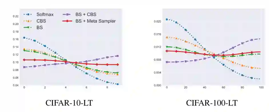 为了解决过平衡问题,我们提出了Meta Sampler(元采样器),一种可学习版本的CBS。Meta Sampler使用元学习的方法,显式地学习当前最佳的采样率,从而更好地配合Balanced Softmax的使用。