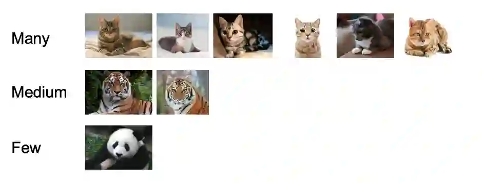 真实世界中的数据分布大多符合长尾分布:常见类比占据了数据集中的主要样本,而大量的罕见类别只在数据集中少量出现。例如一个动物图片数据集中,宠物猫的图片数量可能远远超过熊猫的图片数量。