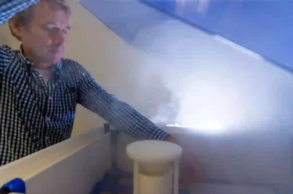 可靠性实验室经理 Bob Mcpherson 从盐雾仓中拿出 Surface Pro 。