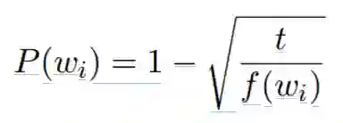 为了克服罕见词和常见词之间的不平衡,我们使用了一个简单的下采样方法:训练集中的每一个词都按照以下公式计算出的概率被丢弃: