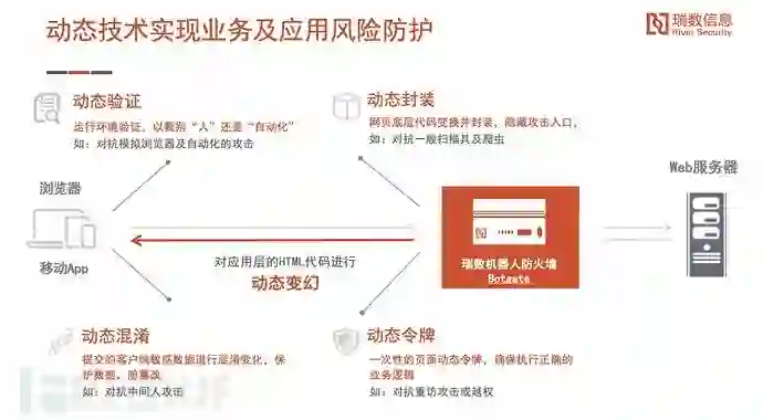 2017年,瑞数信息发布Botgate动态安全保护系统机,通过动态封装、动态验证、动态混淆、动态令牌等创新技术,对服务器网页底层代码的持续动态变换,增加服务器行为的“不可预测性”,应对自动化攻击。