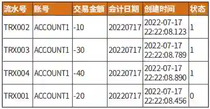 在下一次延时处理前没有交易进入,此次延时处理则按第2点的方式进行了批量处理,但仅处理了TRX001这笔交易。