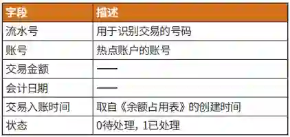 在银行核心系统原有的表设计基础上增加了《余额占用表》和《延时任务表》,用以辅助去掉长时间事务,以及辅助联机步骤传递交易信息给延时步骤。《余额占用表》的关键字段设计如表1所示。
