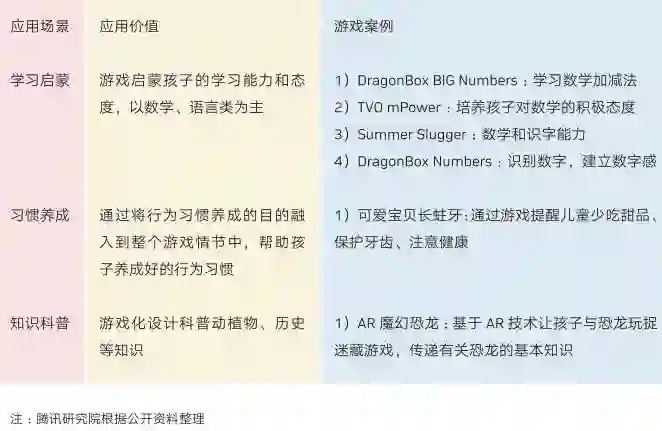 而场景化也是功能游戏的重要特征,因此针对孩子玩的当然就是我们直观理解的“寓教于乐”,儿童早期教育、K12教育、高等教育/职业教育是功能游戏的重要场景之一。
