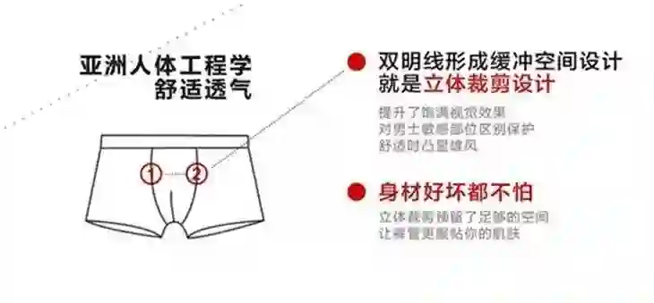 无缝贴合技术保证舒适不紧勒。让私处有充足的独立空间,还“弟弟”一个自由舒适空间。