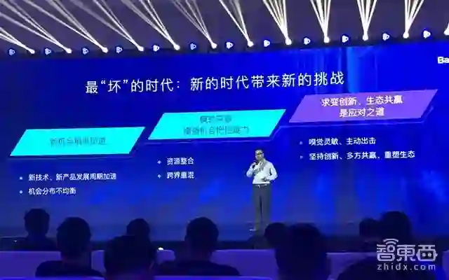 今年这场以“新生态,联未来”为主题的大会百度CEO李彦宏没有抵达现场,但发来了视频致辞,仍然在强调的是百度现在的理念,“用科技让复杂的世界更简单”。并倡议联盟伙伴投身到科技改变世界的浪潮中。