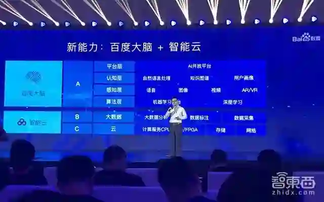 4、新能力:新能力主要基于百度大脑和智能云,跟合作伙伴开放。百度大脑提供AI方面的能力,智能云则提供大数据的能力。