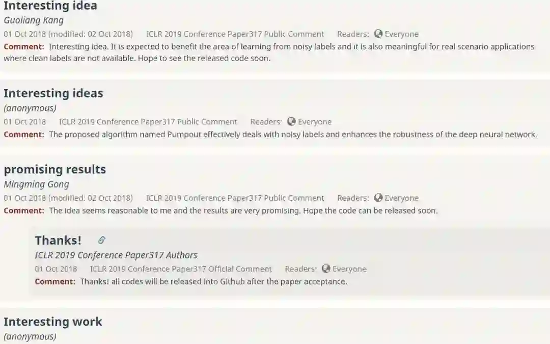 刚开始评论区出现了一些未匿名的评论,赞其使用的方法简单、合理,很巧妙地利用了噪声数据的信息。作者也给出了积极的回应。