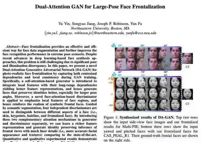 论文名称:Dual-Attention GAN for Large-Pose Face Frontalization