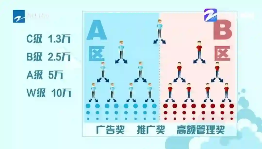 金老师说,只要下面的人发展会员了,金字塔上面的每个人都分到钱,有广告奖、推广奖、管理奖等等。