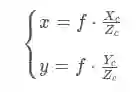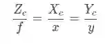 此时,假设相机坐标系中有一点M,则在理想图像坐标系下(无畸变)的成像点P的坐标为(可由相似三角形原则得出):