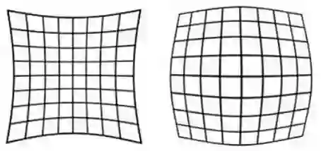 顾名思义,径向畸变就是沿着透镜半径方向分布的畸变,产生原因是光线在原理透镜中心的地方比靠近中心的地方更加弯曲,这种畸变在普通廉价的镜头中表现更加明显,径向畸变主要包括桶形畸变和枕形畸变两种。以下分别是枕形和桶形畸变示意图: